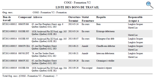 - Aller sous "Entretien -> Bons de travail - Liste -> Liste des bons de travail".