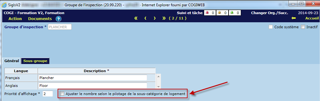 Une fois coché, le groupe ou le sous-groupe ne sera présent qu'en nombre exact sur la fiche d'inspection d'un logement. Un numéro est associé au nombre pour en faire la différence.
