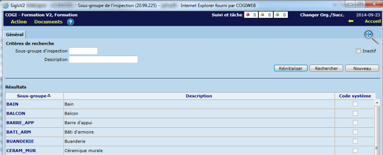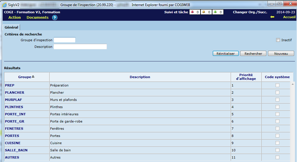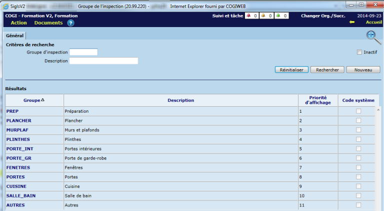 Les groupes représentent les ensembles principaux d'éléments à inspecter (ex. "Portes", "Fenêtres", "Cuisine", etc.).