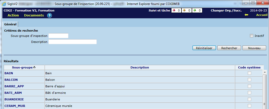 Ces groupes permettent d'ajouter les sous-groupes préalablement pilotés. De plus, les actions à entreprendre sont également déterminées dans cet écran. Ces actions sont représentées par des cases à cocher sur le formulaire et à l'écran.