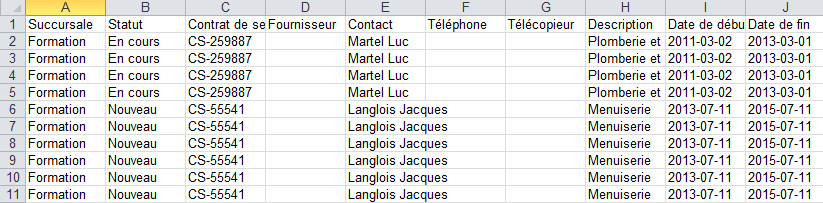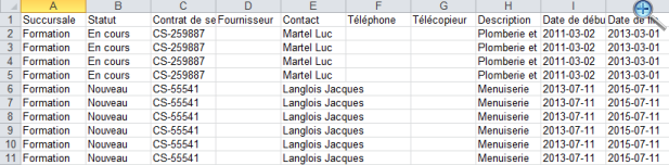 Exporter une liste de contrats de service