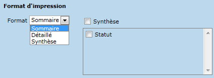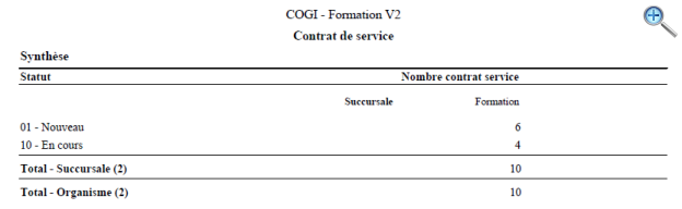 Le format synthèse présente un résumé des contrats de service par statut.