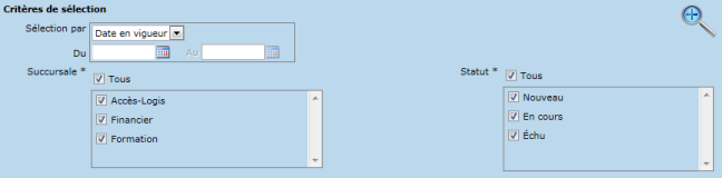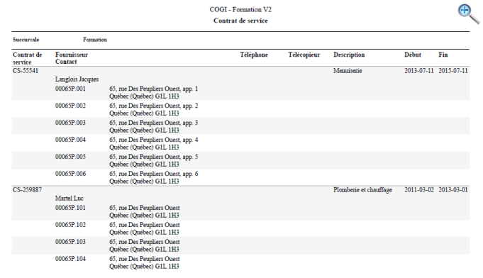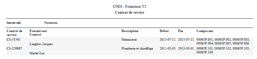 La liste des contrats de service permet d'imprimer et exporter une liste de contrats de service, selon différents critères de sélection.