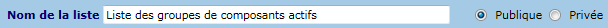 La liste des groupes de composants permet de spécifier un ou plusieurs groupes de composants en particulier.