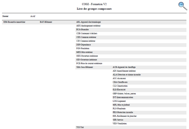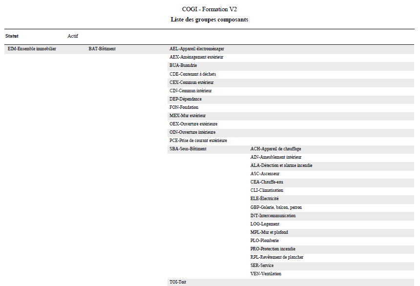 La liste des groupes de composants peut être imprimée en format sommaire seulement.