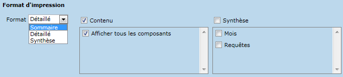Les formats sommaire et détaillé permettent de trier les informations selon les critères suivants :