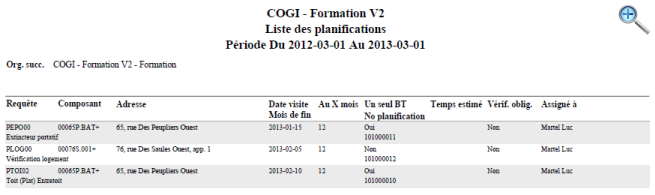 La liste des planifications permet d'imprimer et exporter une liste des planifications, selon différents critères de sélection. Par ailleurs, des listes personnalisées de planifications peuvent être enregistrées.