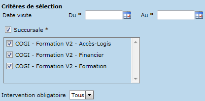 - Date de visite (Du, Au)
