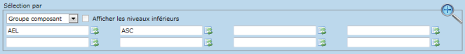 La section "Sélection par" permet de spécifier une ou plusieurs valeurs en particulier. Les catégories de valeurs disponibles sont :