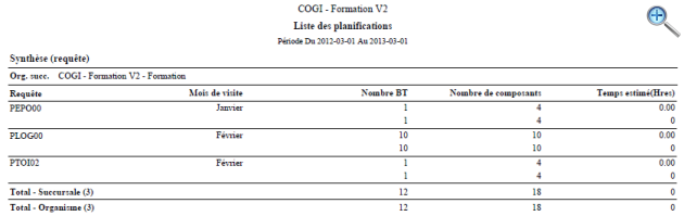 Le format synthèse présente un résumé des planifications par mois ou par requête.