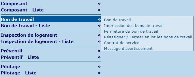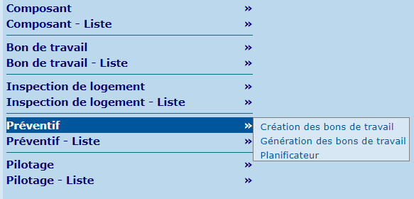 | Création des bons de travail | Permet de créer des bons de travail préventifs. |