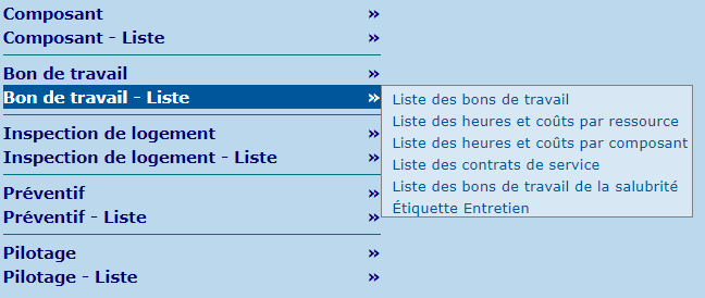 | Liste des bons de travail | Permet de créer des listes publiques ou privées de bons de travail, selon différents critères. |