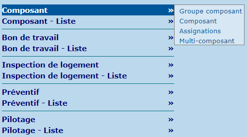 | Multi-composant | Permet de regrouper des composants afin d'accélérer l'association de plusieurs composants à un bon de travail (ex. créer le multi-composant "SUD" pour regrouper tous les bâtiments du secteur sud du territoire). |
