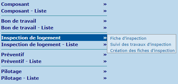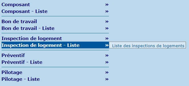 La section "Inspection de logement" contient les écrans permettant qui permet la gestion et le suivi des fiches d'inspection.