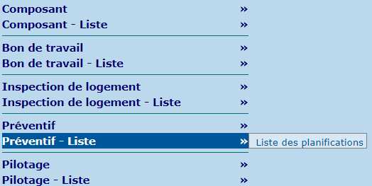 La section "Préventif - Liste"