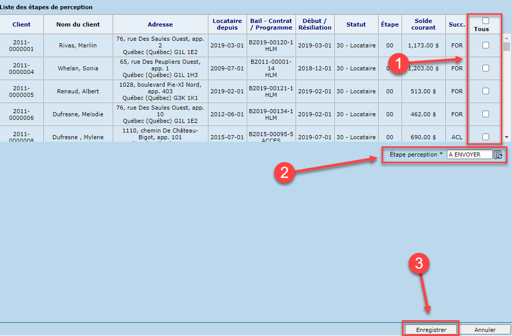 Voici les étapes à suivre pour changer l'étape de perception d'un ou plusieurs comptes clients.