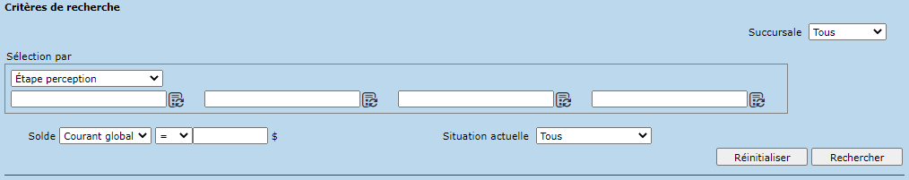 - Sélection par "Étape de perception" ou "Catégorie d'étape de perception"