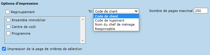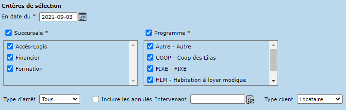 La liste des arrêts de paiement permet de spécifier les critères suivants :
