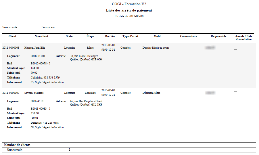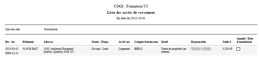 La liste des arrêts de paiement permet d'imprimer la liste des arrêts de paiement, selon différents critères de sélection. Par ailleurs, des listes personnalisées d'arrêts de paiement peuvent être enregistrées.