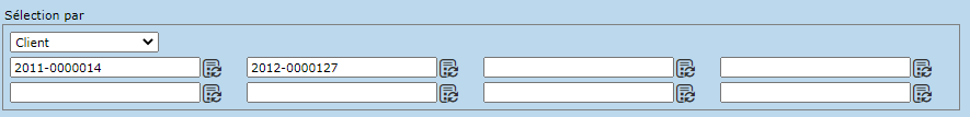 La section "Sélection par" permet de spécifier une ou plusieurs valeurs en particulier. Les catégories de valeurs disponibles sont :
