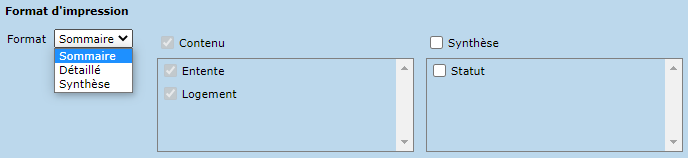 Le format synthèse présente un résumé des informations par statut.
