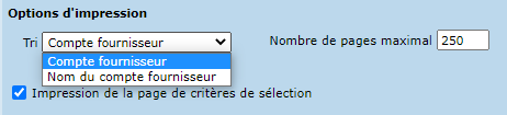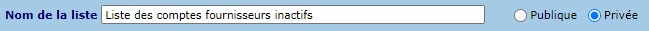 La liste des comptes fournisseurs permet d'imprimer ou exporter la liste des comptes fournisseurs, selon différents critères de sélection. Par ailleurs, des listes personnalisées de comptes fournisseurs peuvent être enregistrées.