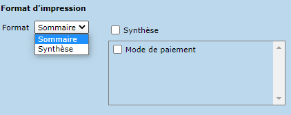 Le format synthèse présente un résumé des informations par mode de paiement.