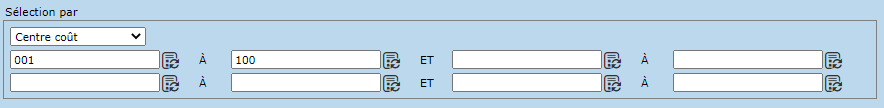 La section "Sélection par" permet de spécifier une ou plusieurs valeurs en particulier. Les catégories de valeurs disponibles sont :