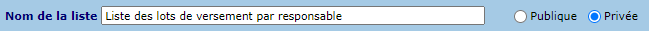 La liste des lots de versement peut être triée selon les critères suivants :