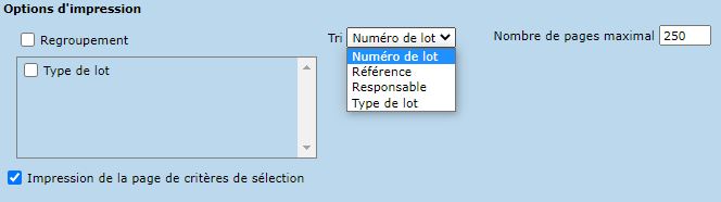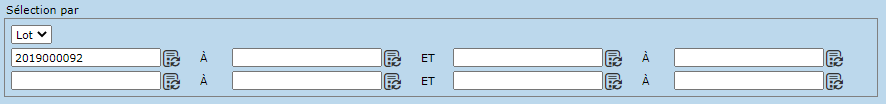 La section "Sélection par" permet de spécifier un ou plusieurs lots particulier.