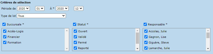- Période (De, À)
