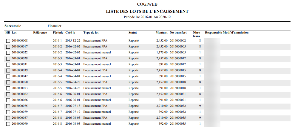 <Accueil » Financier » Listes » Lots de l'encaissement