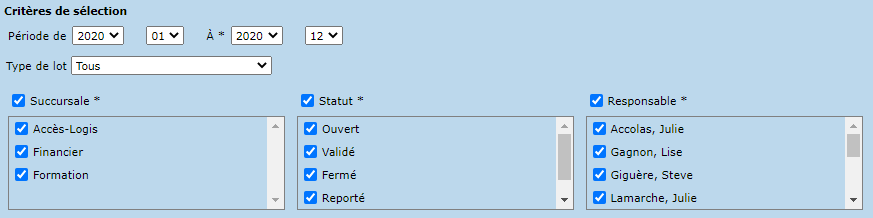 - Période (De, À)