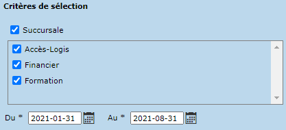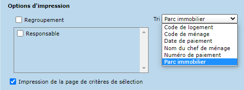 Le Journal de l'encaissement permet de regrouper les données par responsable. Par ailleurs, les données peuvent être triées selon les critères suivants :