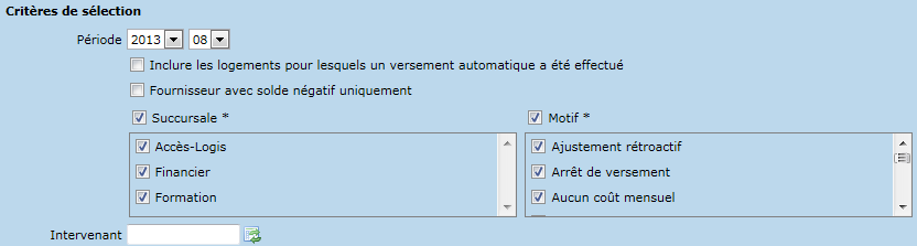 Selon les critères de recherche spécifiés, il est possible de vérifier les causes de non-versement sur des logements (ex. logements en arrêt de versement). Par ailleurs, il est possible d'identifier les fournisseurs avec un solde négatif.