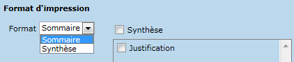 Le format synthèse présente un résumé des informations par justification.