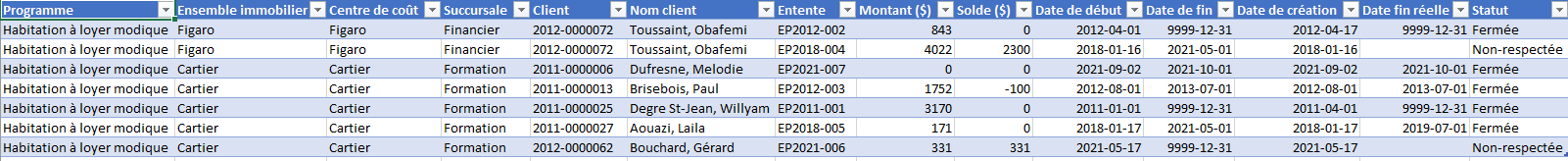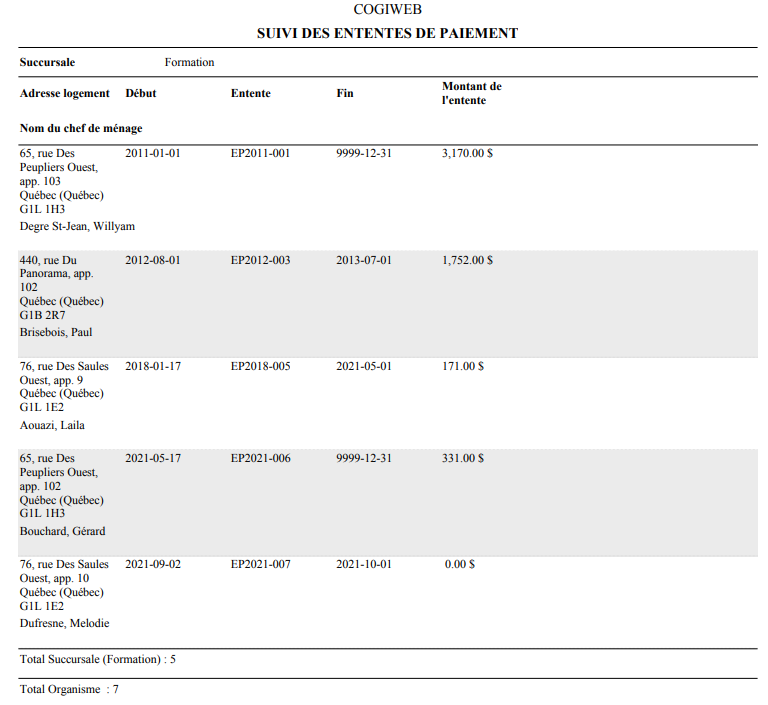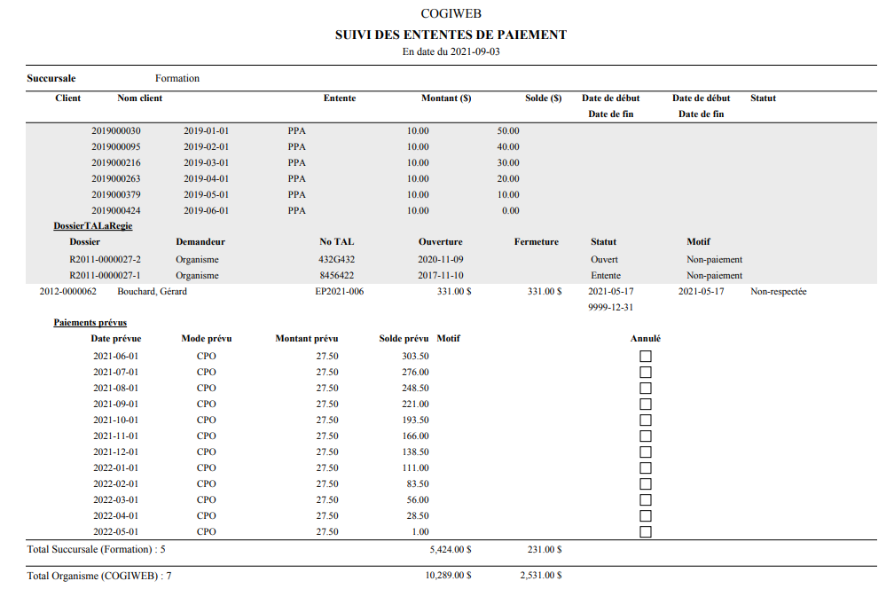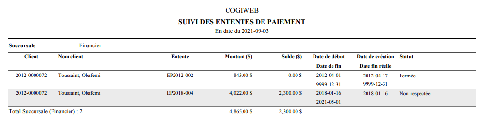 <Accueil » Financier » Listes » Suivi des ententes de paiement