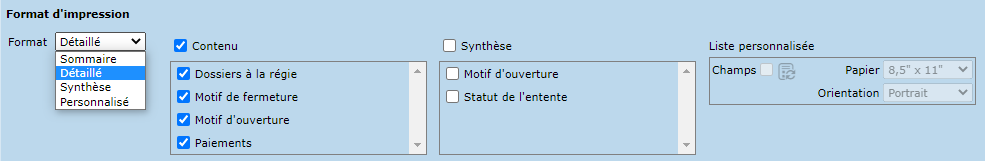Le suivi des ententes de paiement peut être imprimé en 4 formats :