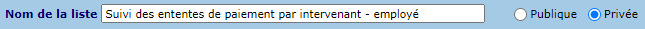 Le suivi des ententes de paiement peut être trié selon les critères suivants :