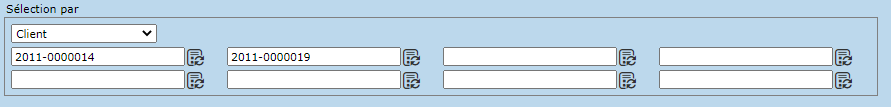 La section "Sélection par" permet de spécifier une ou plusieurs valeurs en particulier. Les catégories de valeurs disponibles sont :