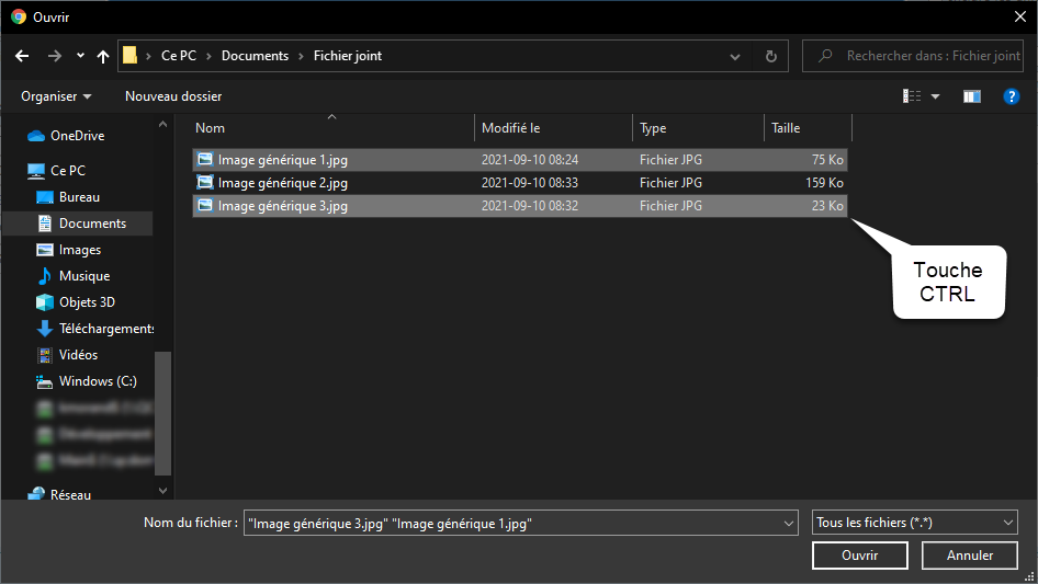 - En maintenant la touche CTRL enfoncée, il est possible de sélectionner plusieurs fichiers non consécutifs;