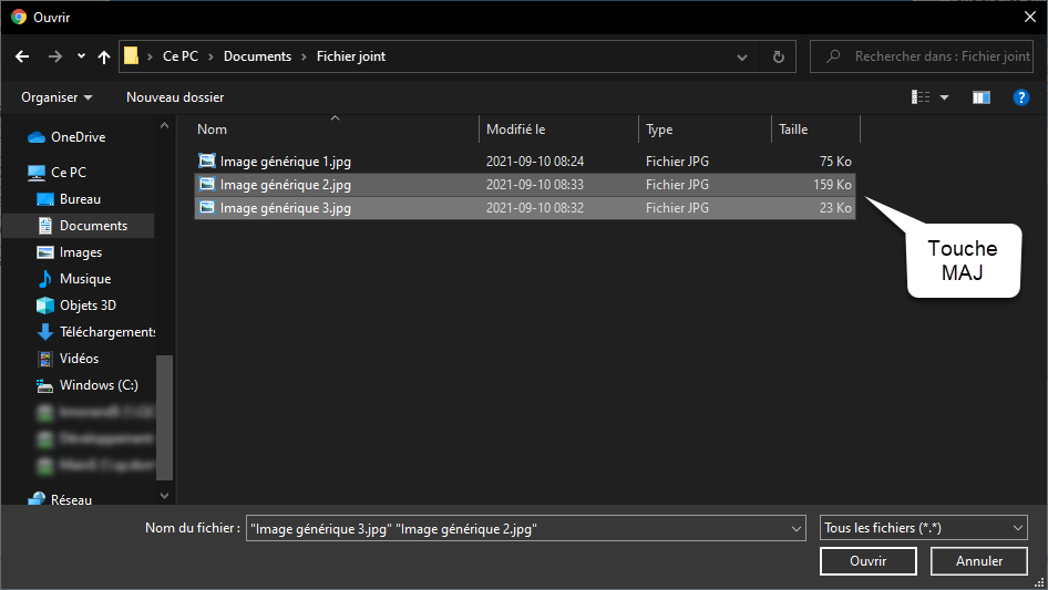 - En maintenant la touche MAJ enfoncée, il est possible de sélectionner une série de fichier consécutifs.