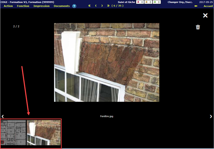 Celle-ci permet de faciliter la consultation des images, en plus de permettre la prévisualisation des images à l'aide d'imagettes (thumbnails) dans la partie inférieure de la visionneuse. Les imagettes affichent une version miniature de toutes les images jointes au dossier concerné.