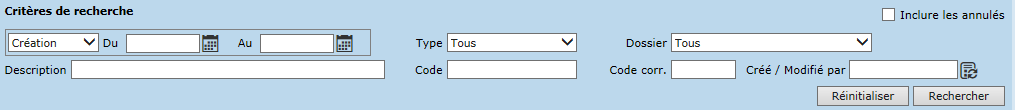 Le bouton "Rechercher" permet de lancer la recherche selon les critères spécifiés. Pour remettre tous les champs à blanc, il suffit de cliquer sur le bouton "Réinitialiser".