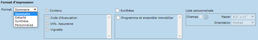 Le format détaillé fournit les informations de base et des informations complémentaires pour chaque logement et ses occupants. Par ailleurs, le format détaillé permet d'afficher ou non le contenu suivant :