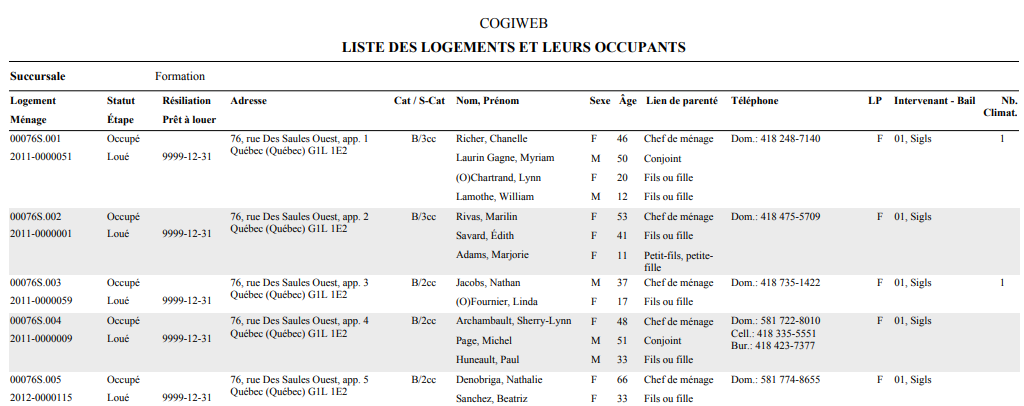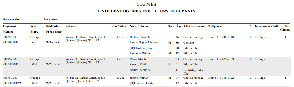Le format sommaire fournit les informations de base pour chaque logement et ses occupants.