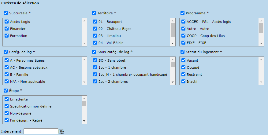 La liste des logements et leurs occupants permet de spécifier les critères suivants :