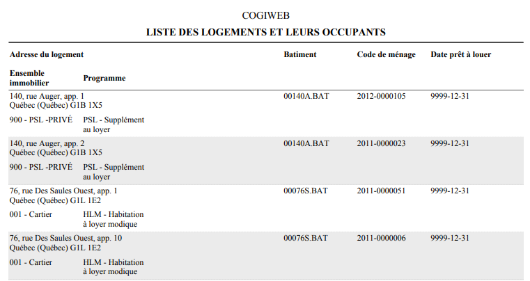<Accueil » Immobilier » Listes » Liste des logements et leurs occupants
