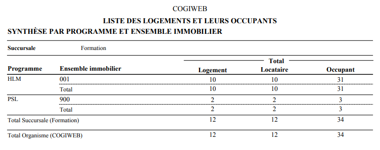 Le format sommaire permet de regrouper les informations de la liste des logements et leurs occupants selon les critères suivants :