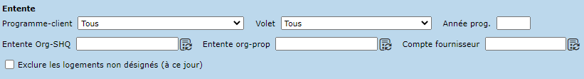 La section "Entente" permet de spécifier un ou plusieurs critères relatifs à l'entente sur les logements. Les critères disponibles sont :